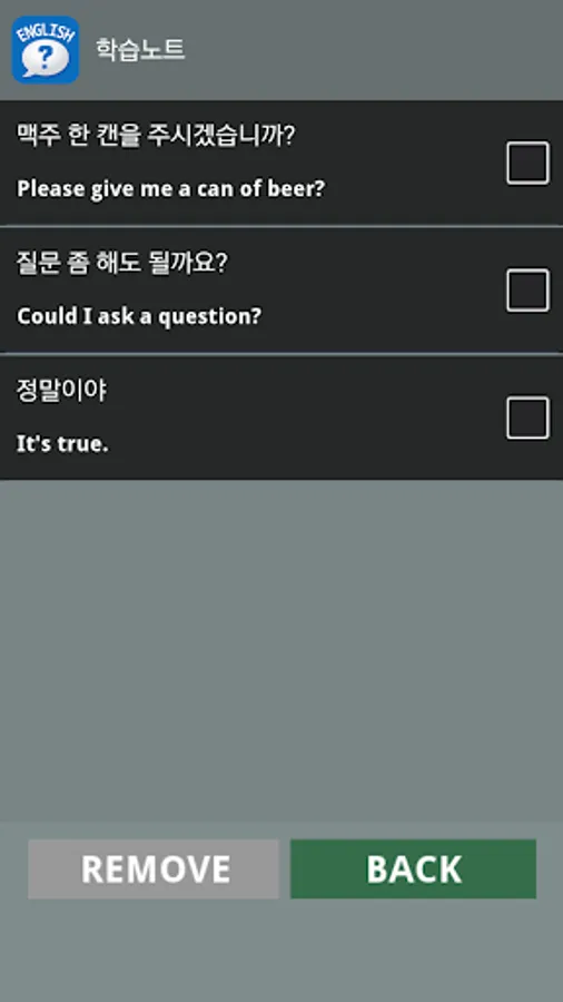 It is a bit forcible, but if you solve the English quiz one by one, your English skill will increase steadily.