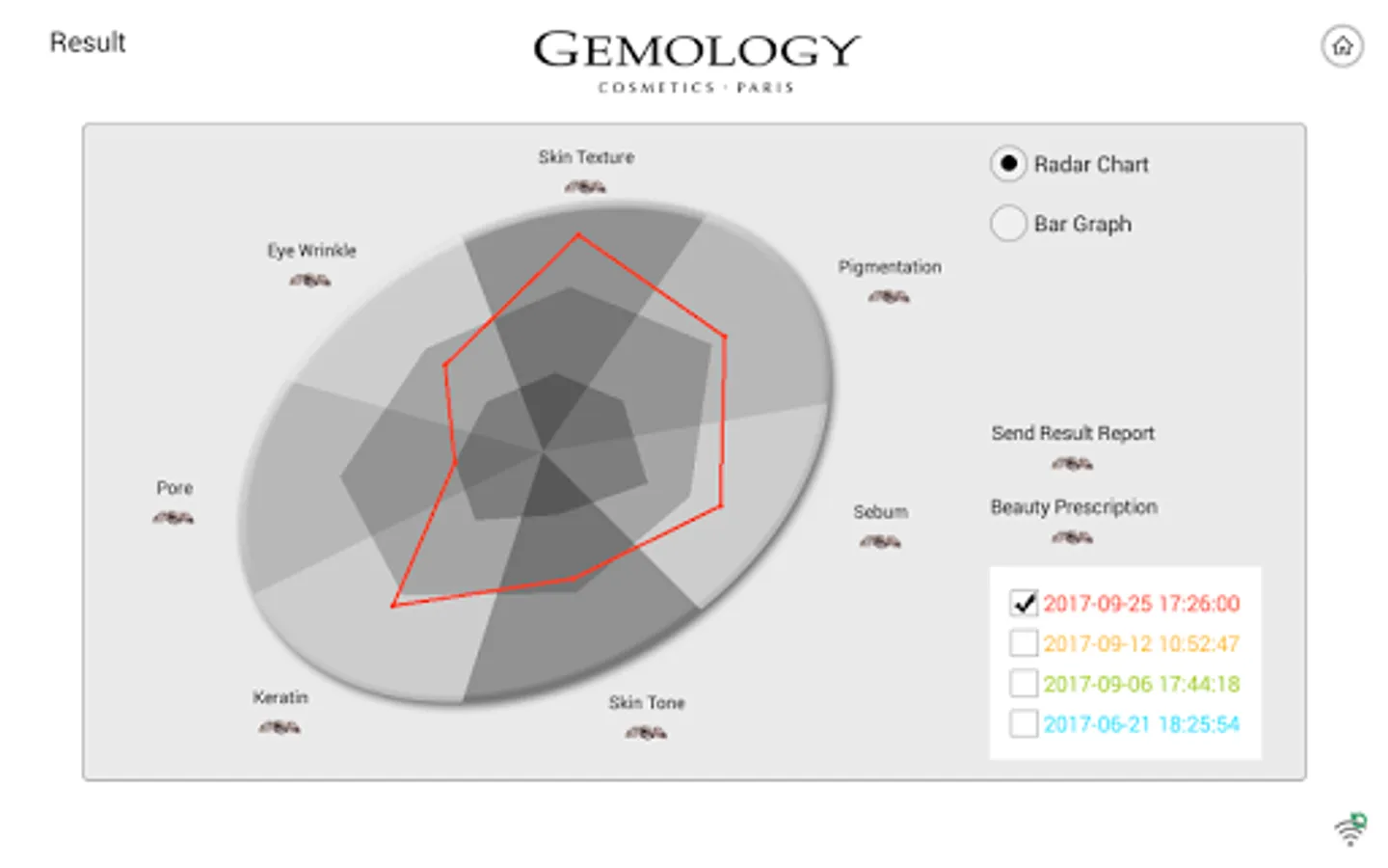 GEMOLOGY App analyzes your skin and provides the results with score & grade based on
