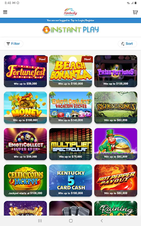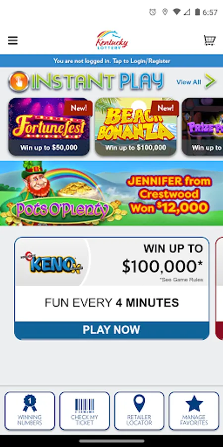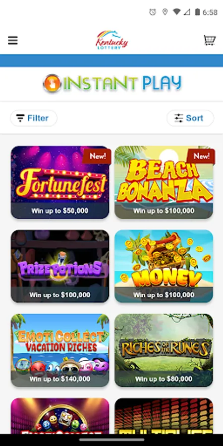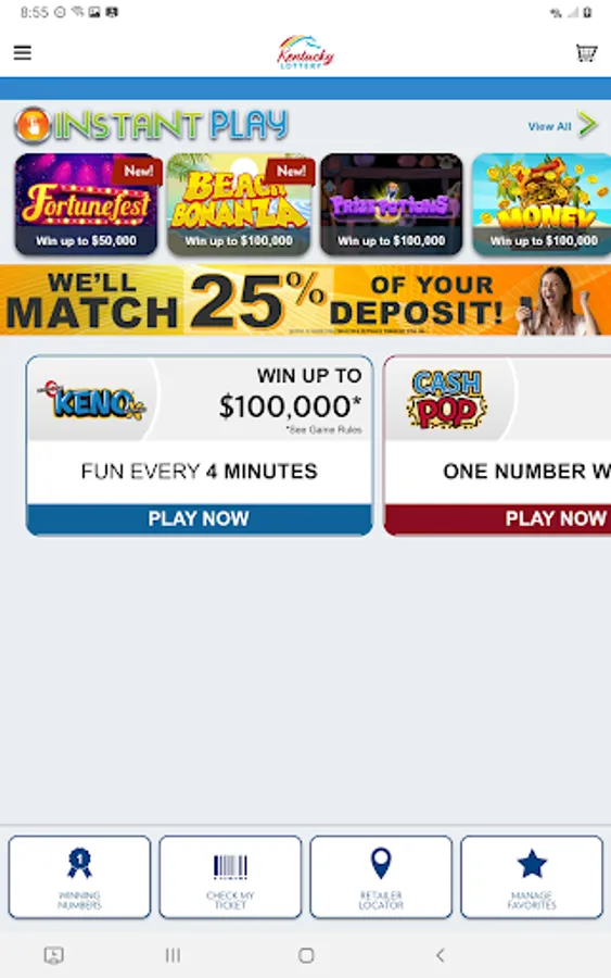 Fuel your imagination with the official Kentucky Lottery app. Play Instant Play Games or your favorite jackpot games, find a Kentucky Lottery retailer, save your favorite wagers, create a virtual play slip, scan tickets to see if you're a winner, enter second chance promotions and check your lottery numbers anytime, anywhere.