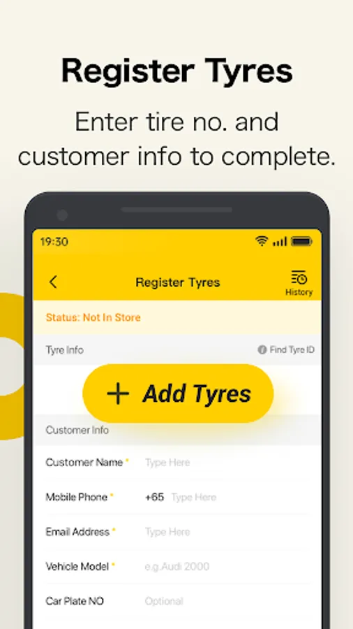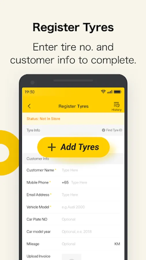 Tire registration easily after the tire installation by simply scanning the bar code on the tire, providing peace of mind to consumers.
