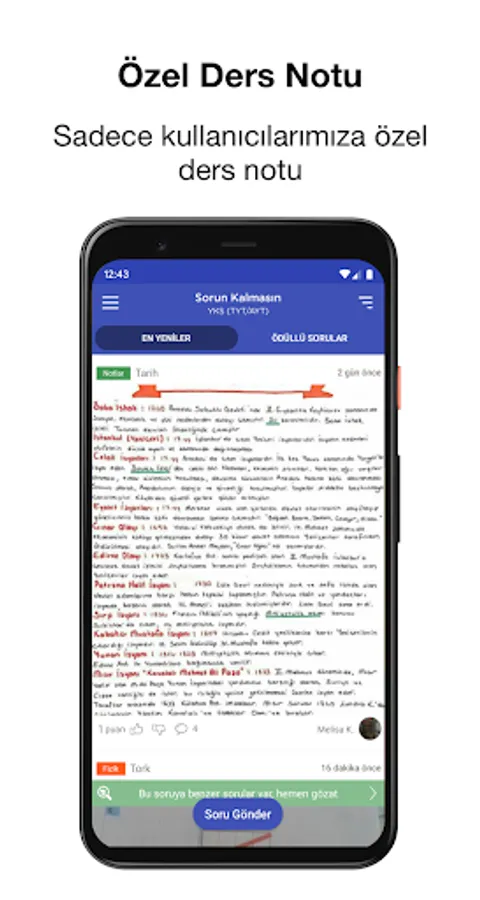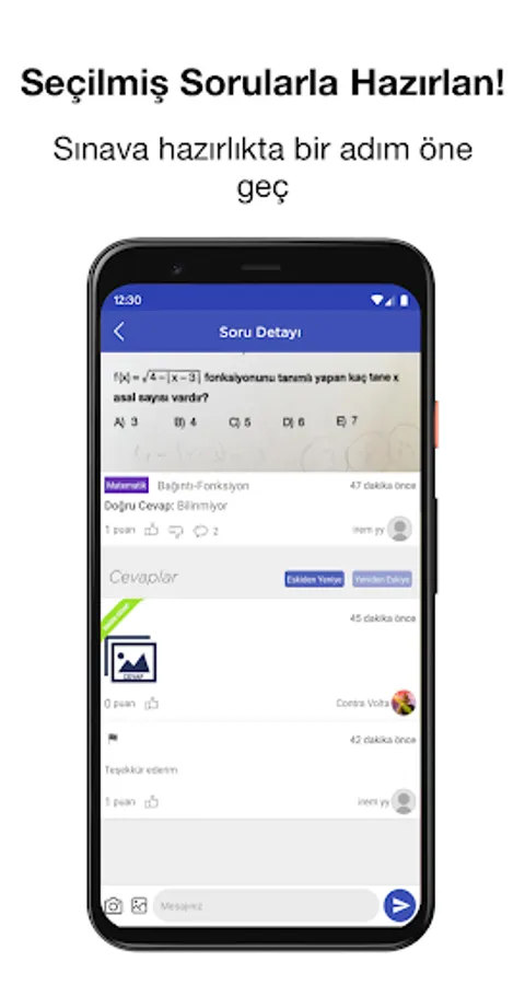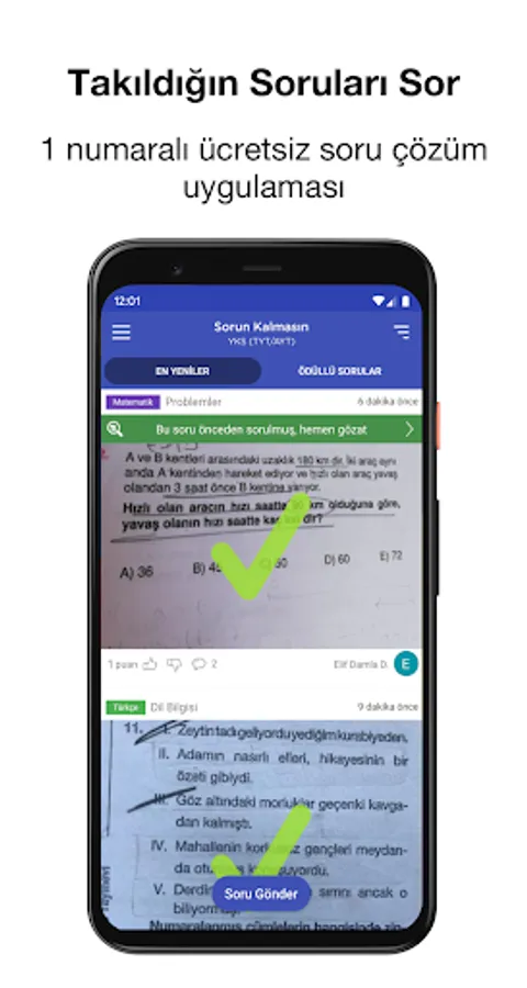 Sorularını sor cevaplansın! Takıldığın soruların fotoğrafını paylaşarak sorularına cevap bulabilirsin veya sorulmuş sorulara yanıt vererek kendini geliştirebilirsin. Ayrıca en popüler soru ve cevapları inceleyip bir adım öne geçebilirsin. Sorun Kalmasın, YKS (TYT/AYT), LYS, KPSS, LGS, DGS ve ALES sınavlarına hazırlık başta olmak üzere öğrencilerin en büyük yardımcısı!