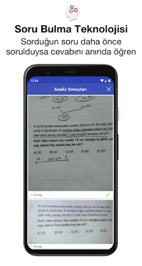 Görüntü tanıma teknolojisi ile sorduğunuz soruyu daha önce sorulmuş sorular arasında tarıyoruz. Böylece daha önce çözülmüş ise anında çözümüne ulaşabiliyorsunuz.