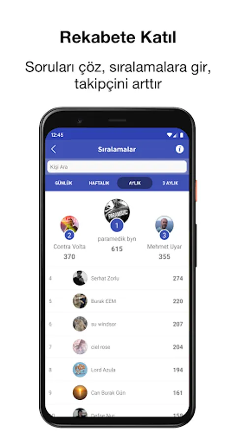 Soru sor; doğru cevap ver; haftalık, aylık ve yıllık sıralamalarda yer al.