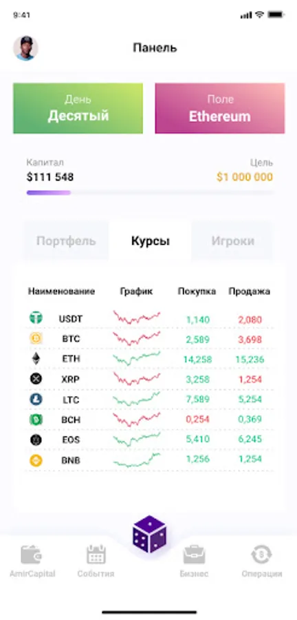 An intelligent board game played with a mobile app. Players compete to achieve financial results in the world of cryptocurrencies and business.