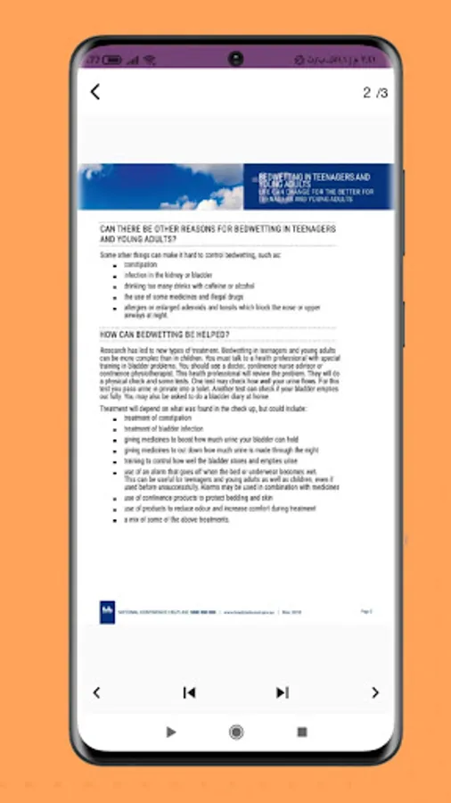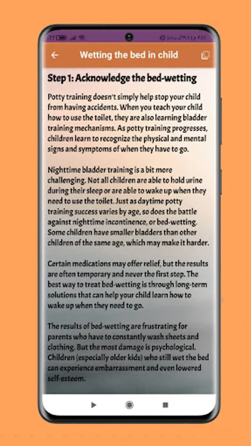 Contents of enuresis control ways app:-