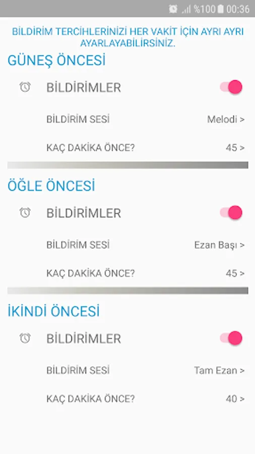 Adhan times taken in accordance with the Diyanet are presented with a very simple and modern interface. With an easy-on-the-eyes and easy-to-understand screen, you will be able to easily follow the prayer times and receive timely notifications.