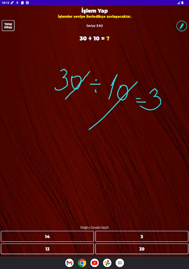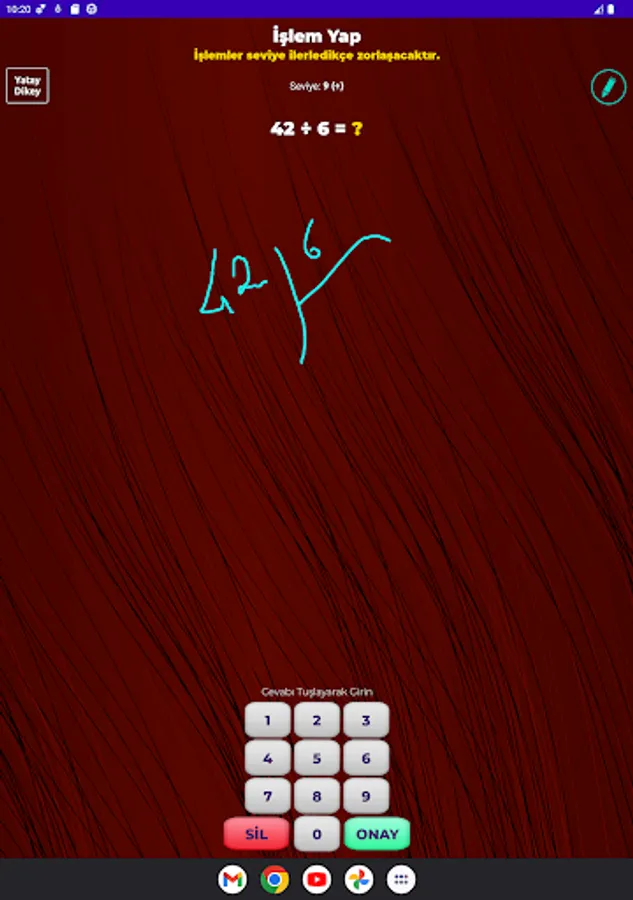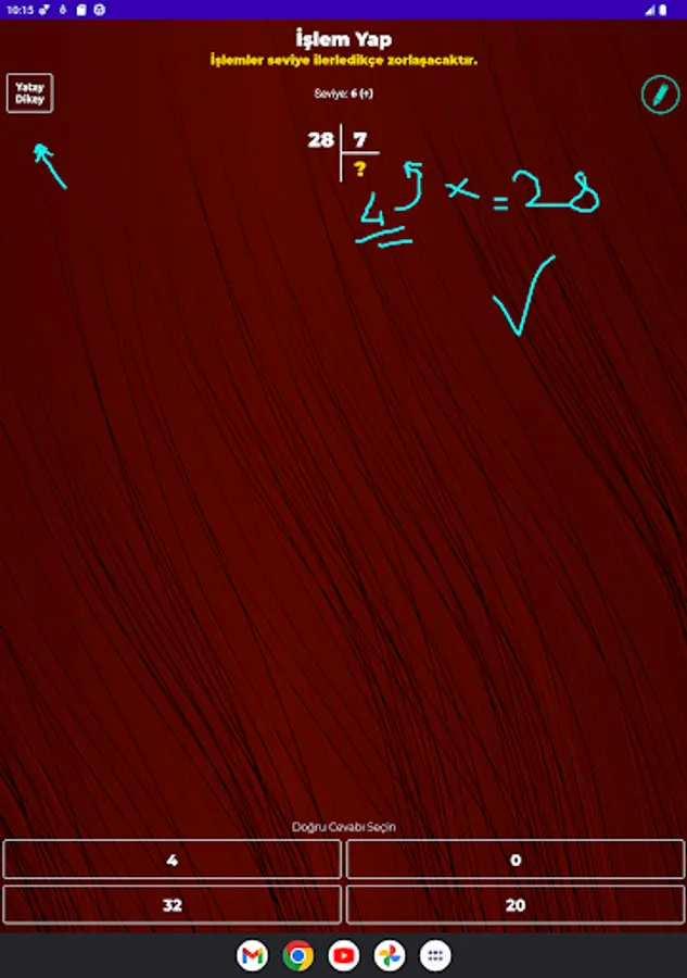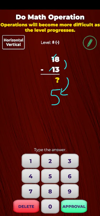 You can see the transactions horizontally or vertically in the four transaction sections. You can scribble on the screen by touching the pen icon in the upper right corner of the screen, and you can also solve the operations with the classical method without dealing with pen and paper.