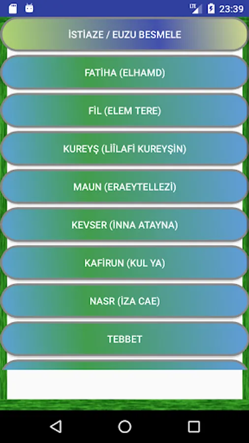 With our application, you can listen to a sura that you choose verse by verse, and the prayers are repeated sentence by sentence and at regular intervals. Verses and prayers read aloud can be followed in Arabic and Latin letters (Turkish). The verse or prayer sentence read at that moment is colored.