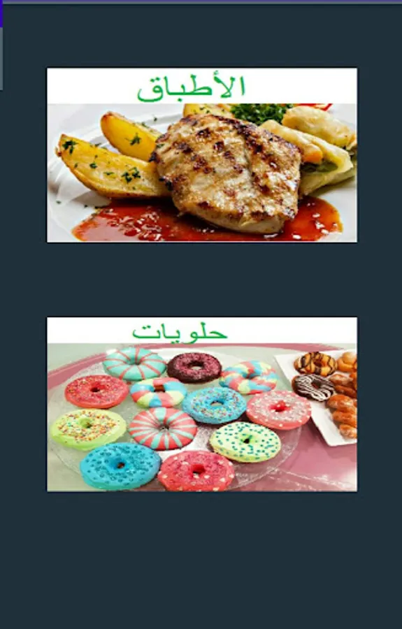 My dishes application contains various types of meals such as sweets and delicacies