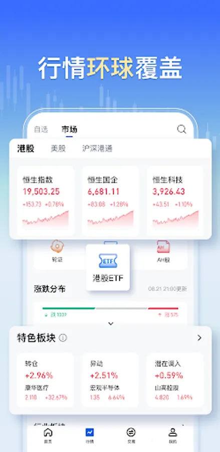 - Rich investment: covering Hong Kong and US stocks, Shanghai-Shenzhen-Hong Kong Stock Connect, ETF, pre-market and after-market, ADR, round certificate center, new share subscription, etc.