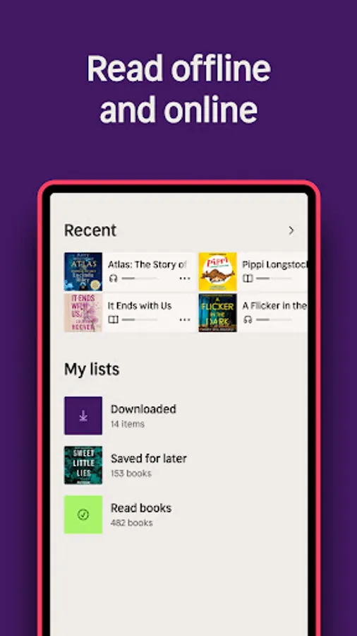 With Nextory you can enjoy unlimited reading and listening anytime, anywhere. You will always have your favorite audiobooks and eBooks with you no matter where you are - in your smartphone or iPad. You can easily access them online or download books in advance to read and listen offline. Even audiobooks for the little ones.