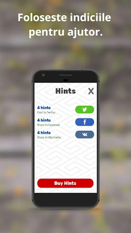 Daca puzzle - lul ti se pare prea dificil, poti sa folosesti indicii, iar daca ramai fara, da un share pe social media, completeaza un chestionar sau sa cumpara.