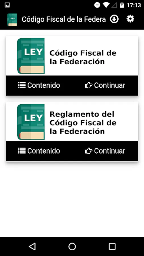 Show Content In this part it is possible to see all the laws and all the articles of each law that the compendium has. When viewing an article, you can scroll to the first article, to the previous, next and last of the Law that you are reading.
