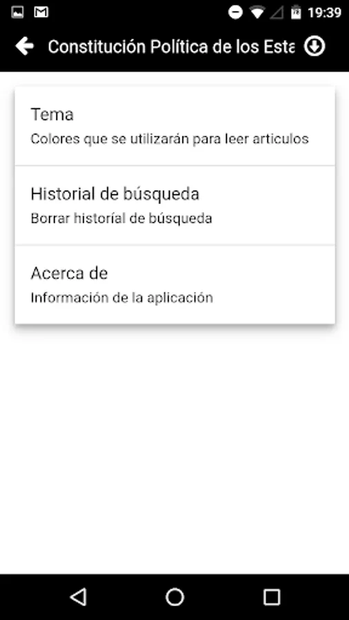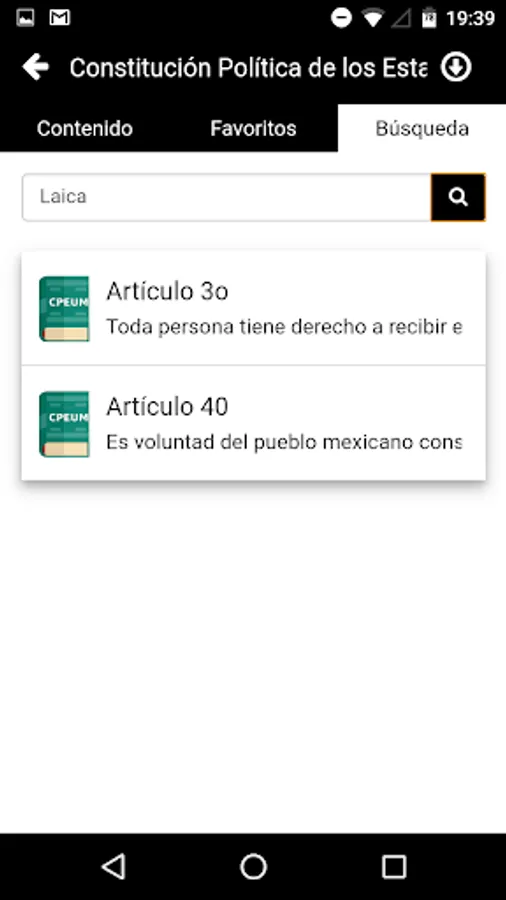 Search function. It also has search function, with which you can search for any text within all laws or those selections. It also has a search history feature, with which you will have no retyping the search term.