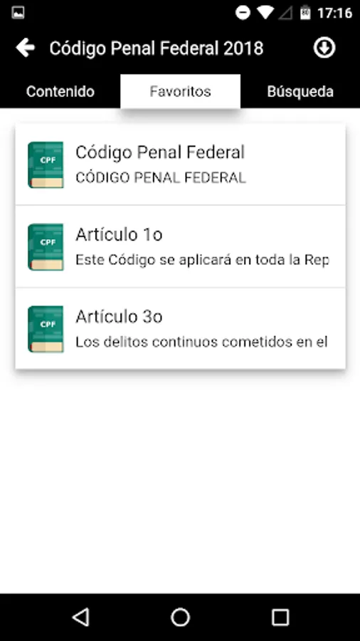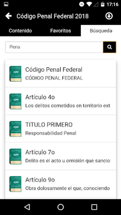 Search Function It also has a search function, with which you can search for any text within all the laws or those you select. In addition, it has a search history function, with which you will not have to type the searched term again.
