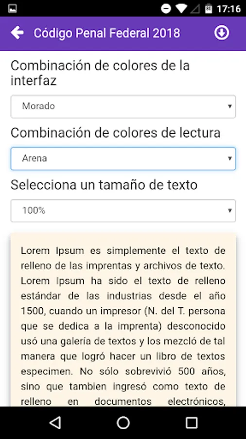 Themes Change the subject of display of the articles, we have 5 themes: Normal, Gray, High Contrast, Night and Old. In addition, you can also change the default zoom level of the text, so that reading it is easier.
