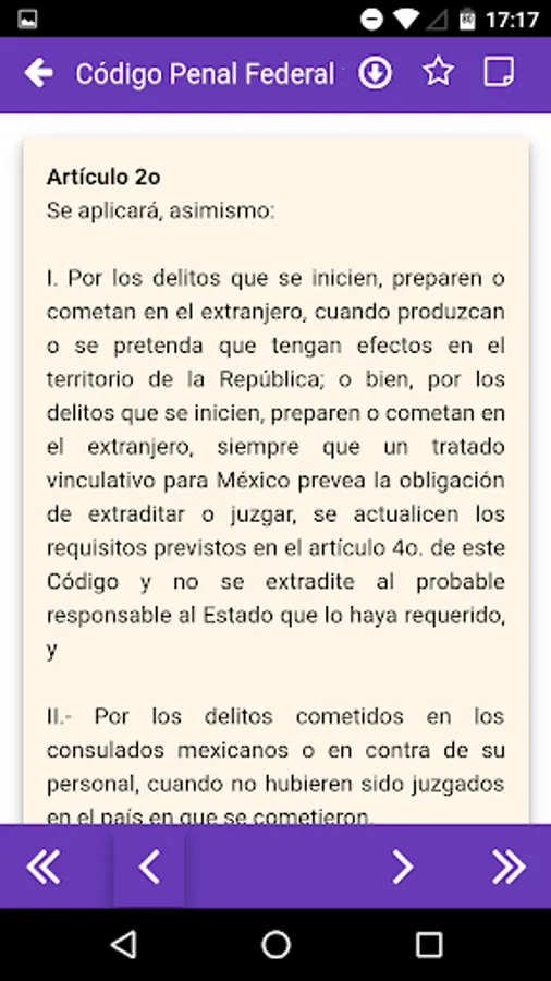 Show Content In this part it is possible to see all the laws and all the articles of each law that the compendium has. When viewing an article, you can scroll to the first article, to the previous, next and last of the Law that you are reading.