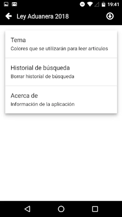Search function. It also has search function, with which you can search for any text within all laws or those selections. It also has a search history feature, with which you will have no retyping the search term.