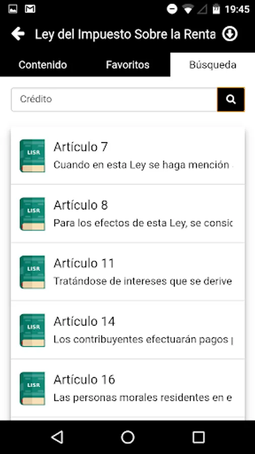 Search Function It also has a search function, with which you can search for any text within all the laws or those you select. In addition, it has a search history function, with which you will not have to type the searched term again.