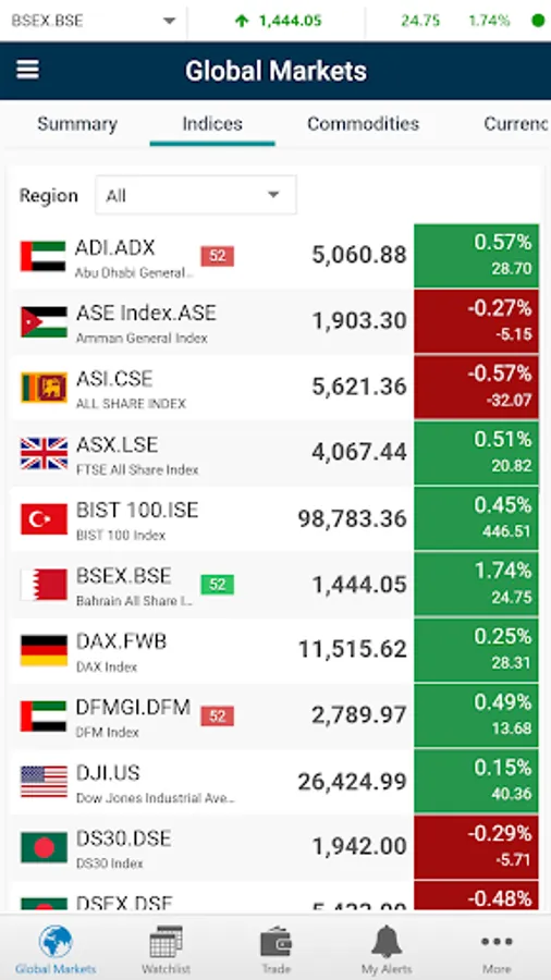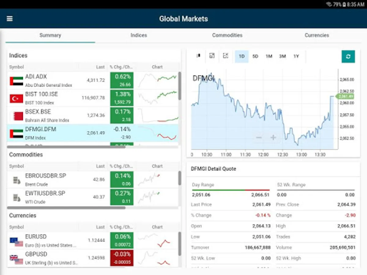 • Global Market Summary to monitor price movement of key market Indices, Commodities and Currencies