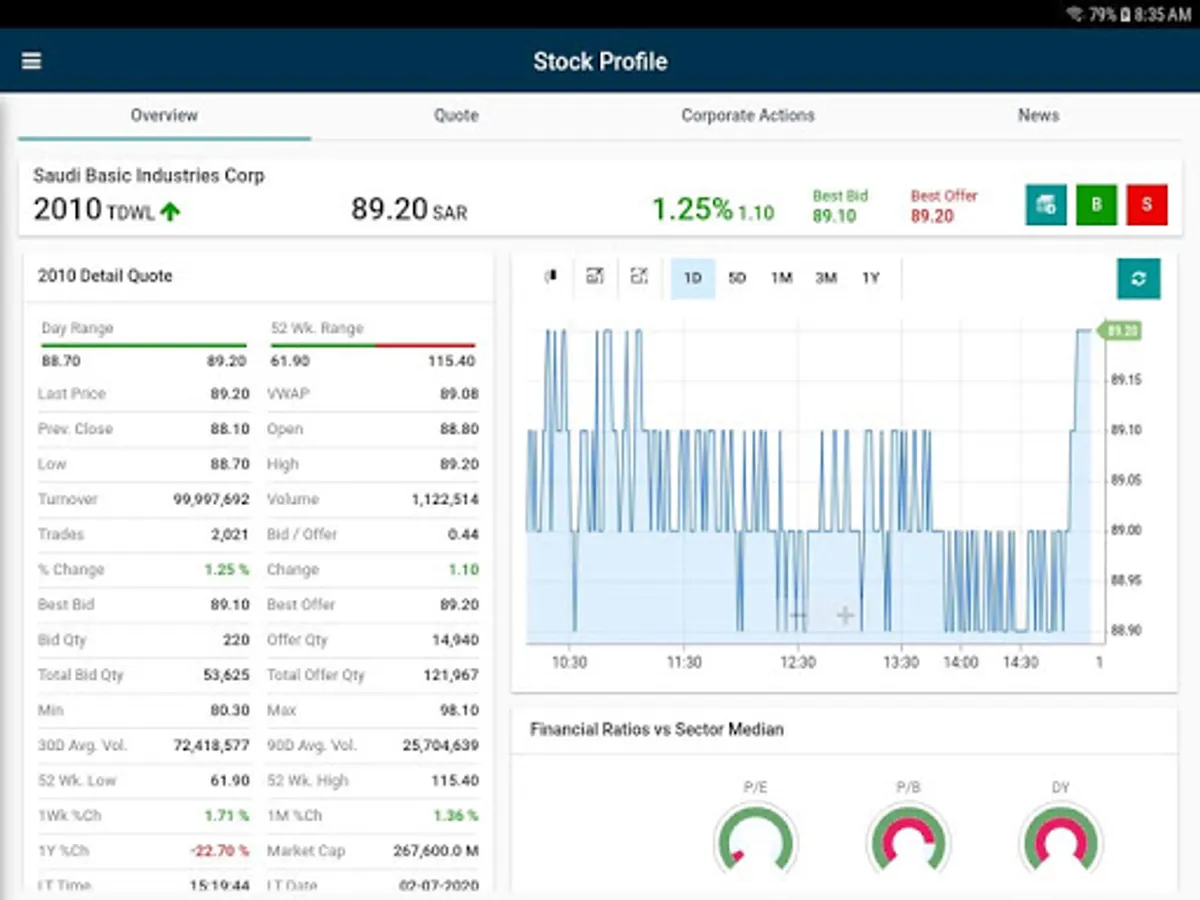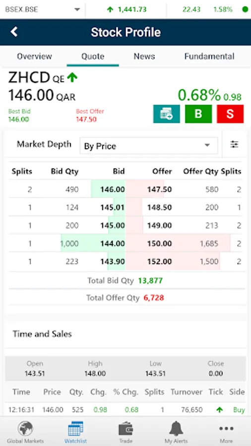 • Account and Portfolio summary, Market depth, Time and sales