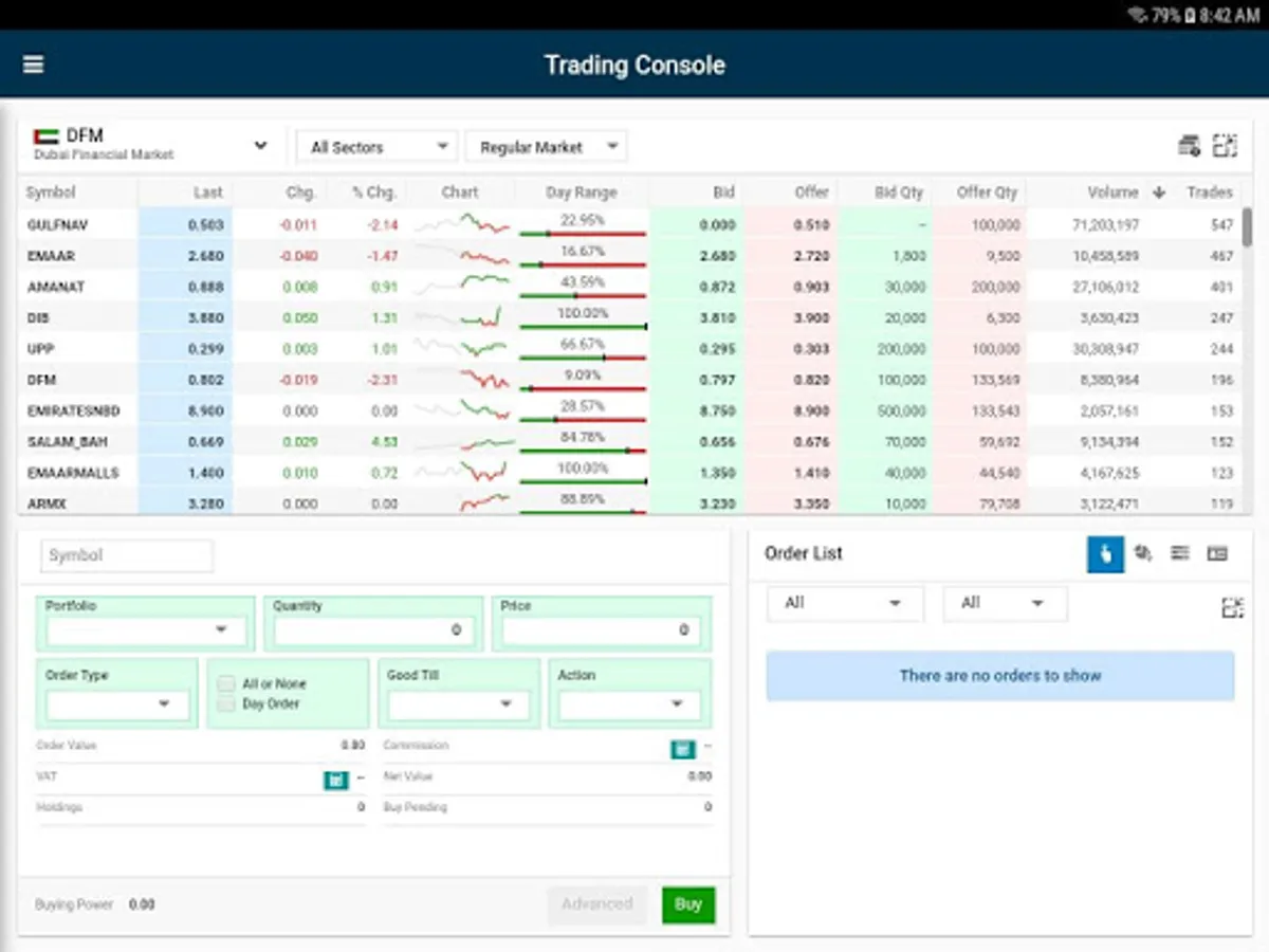 • Watch-list chart to analyze the market compared with average volume and percentage change