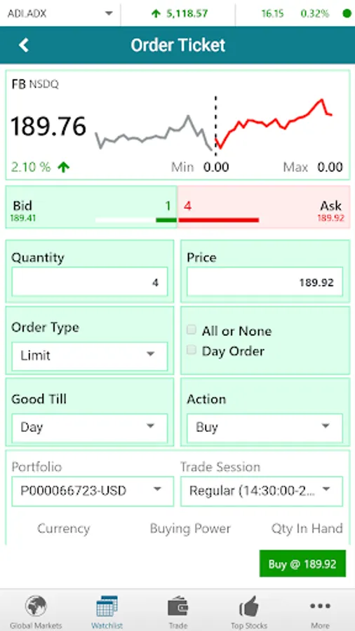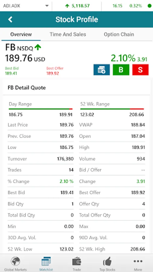 • Detailed quote for symbols, giving you a snapshot of a symbol's performance