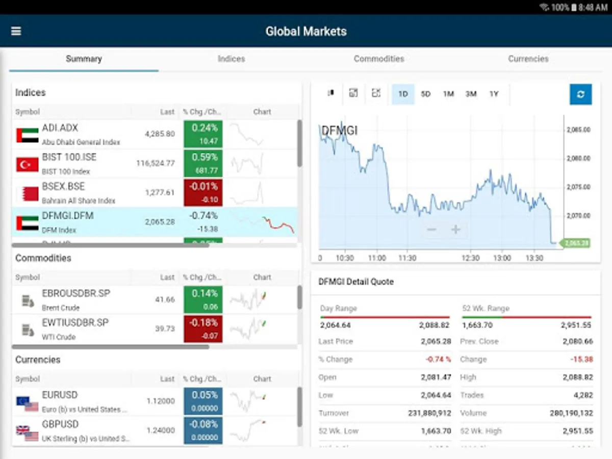 • Global Market Summary to monitor price movement of key market Indices, Commodities and Currencies