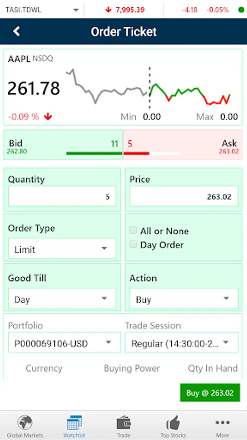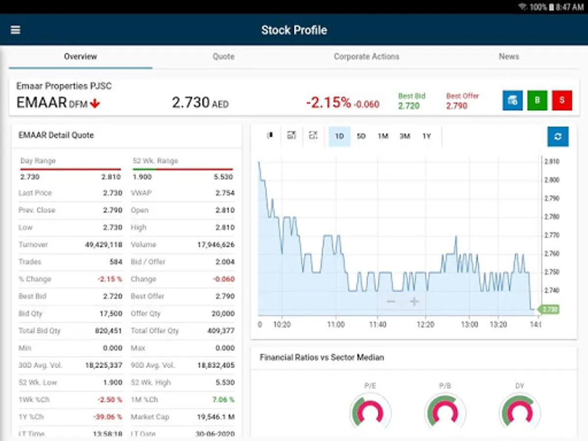 • Detailed quote for symbols, giving you a snapshot of a symbol's performance