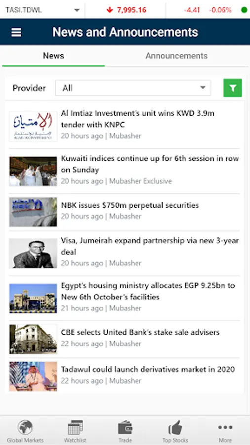 • Watch-list chart to analyze the market compared with average volume and percentage change