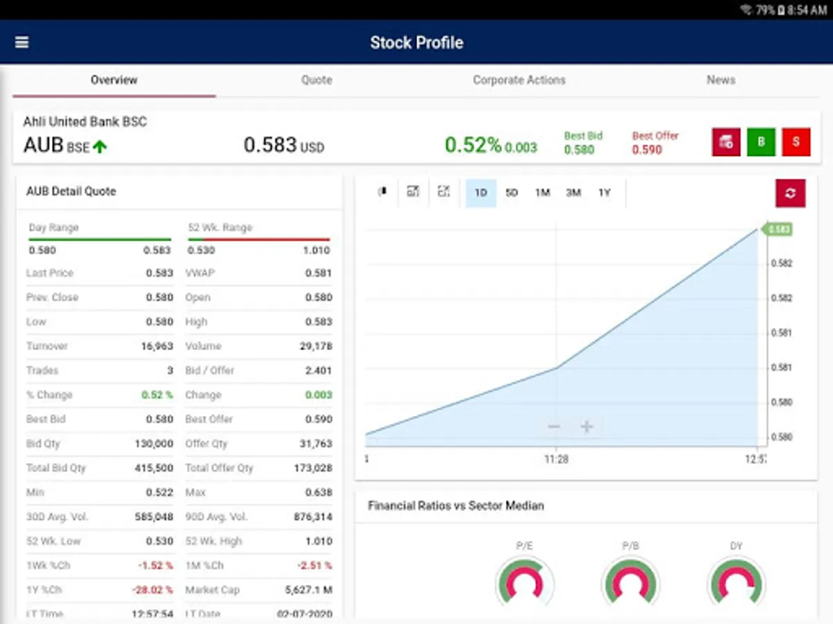 • Detailed quote for symbols, giving you a snapshot of a symbol's performance