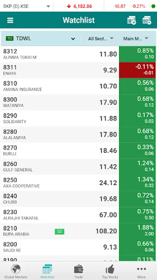 • Watch-list chart to analyze the market compared with average volume and percentage change
