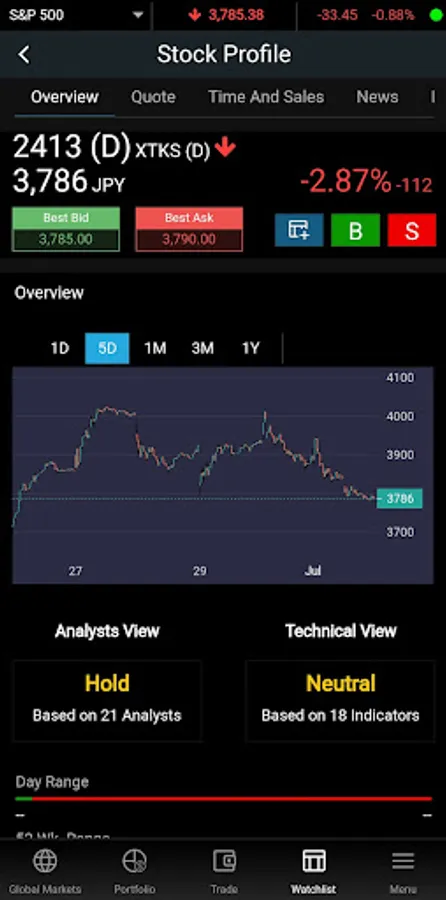 • Detailed quote for symbols, giving you a snapshot of a symbol's performance.