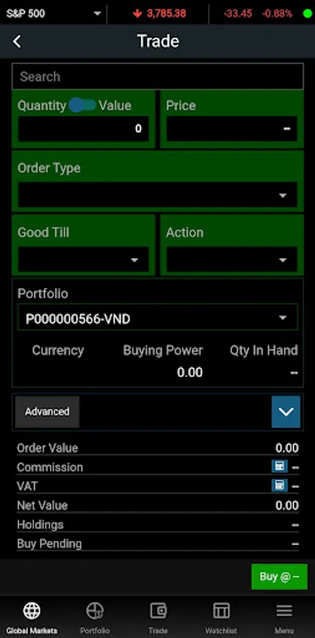 • Status panel to get updated about your trading status and the portfolio valuation.