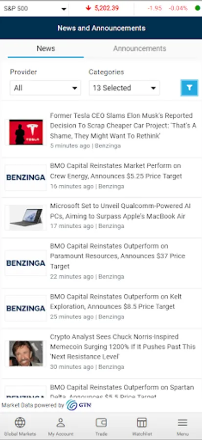 • Market-moving news released by global news sources