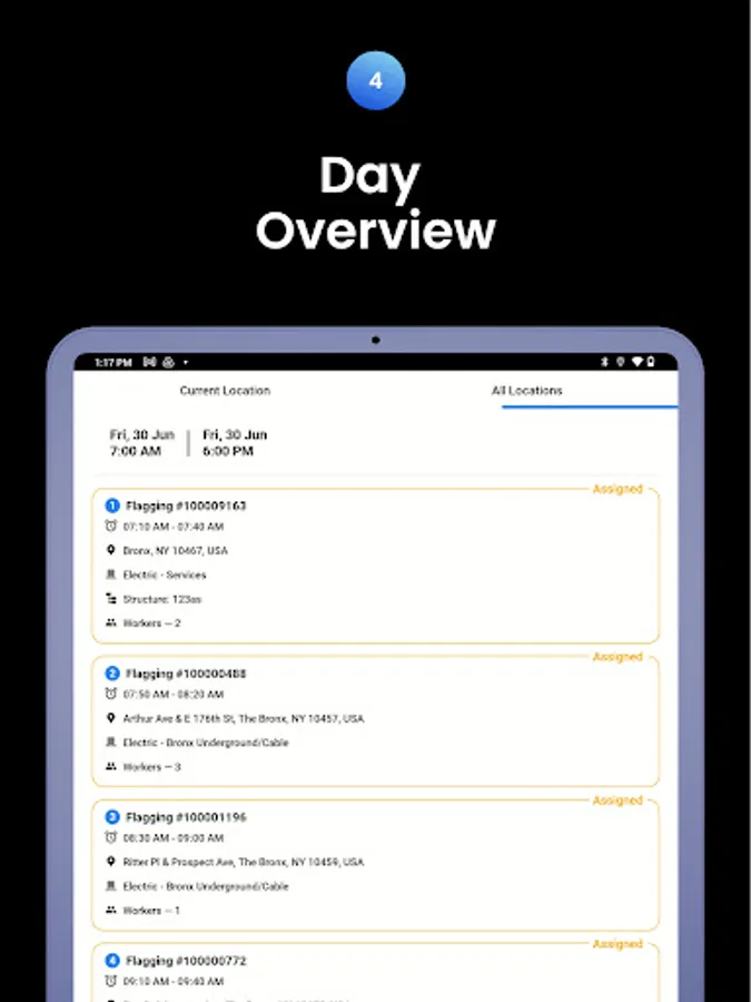 Effortless Scheduling: Receive your pre-planned schedule directly within the app. Each designated time slot provides clear guidance on your next inspection site, ensuring you stay organized and on track.