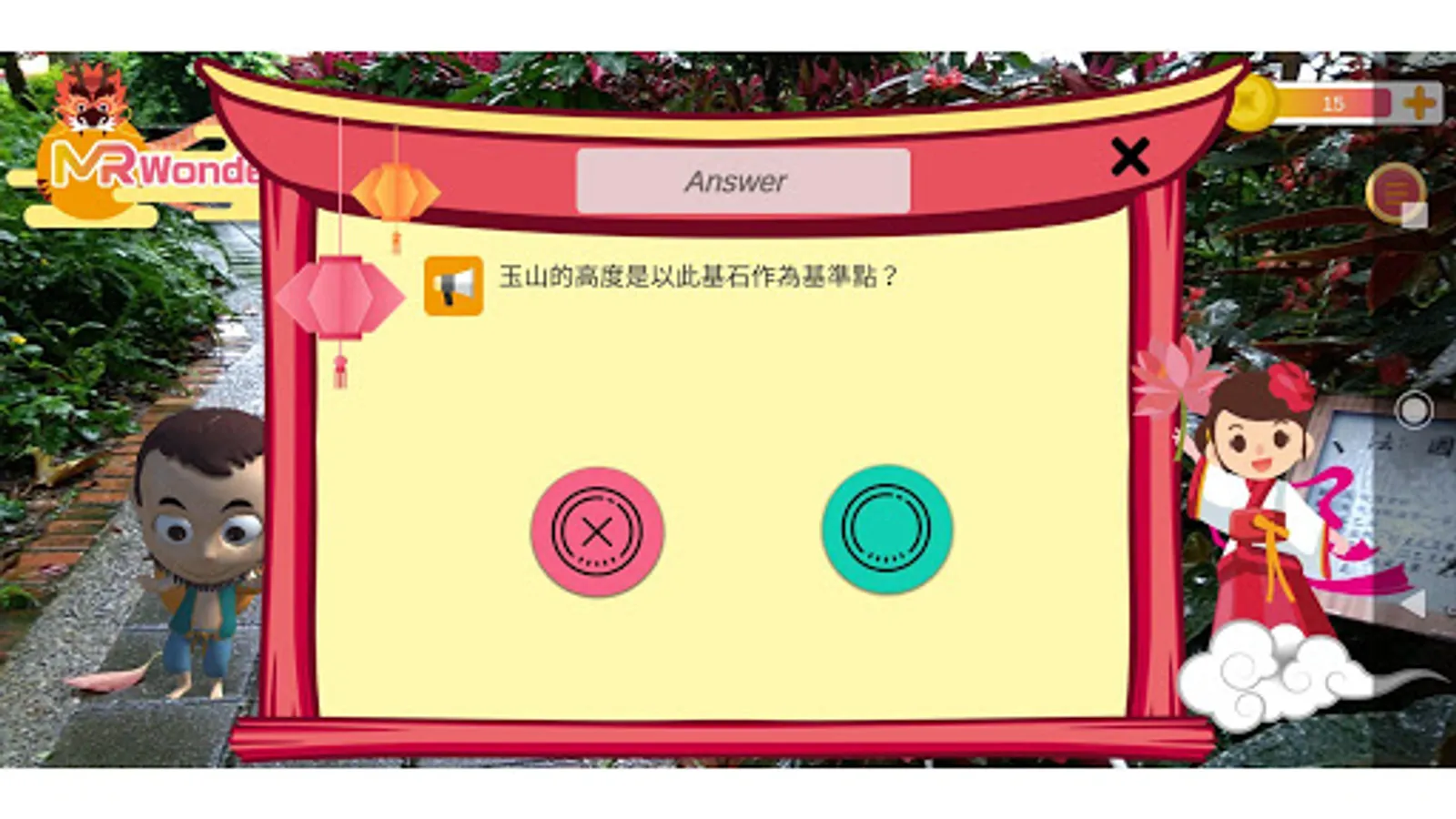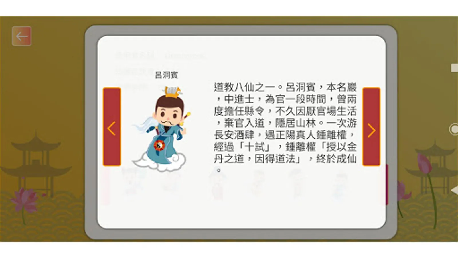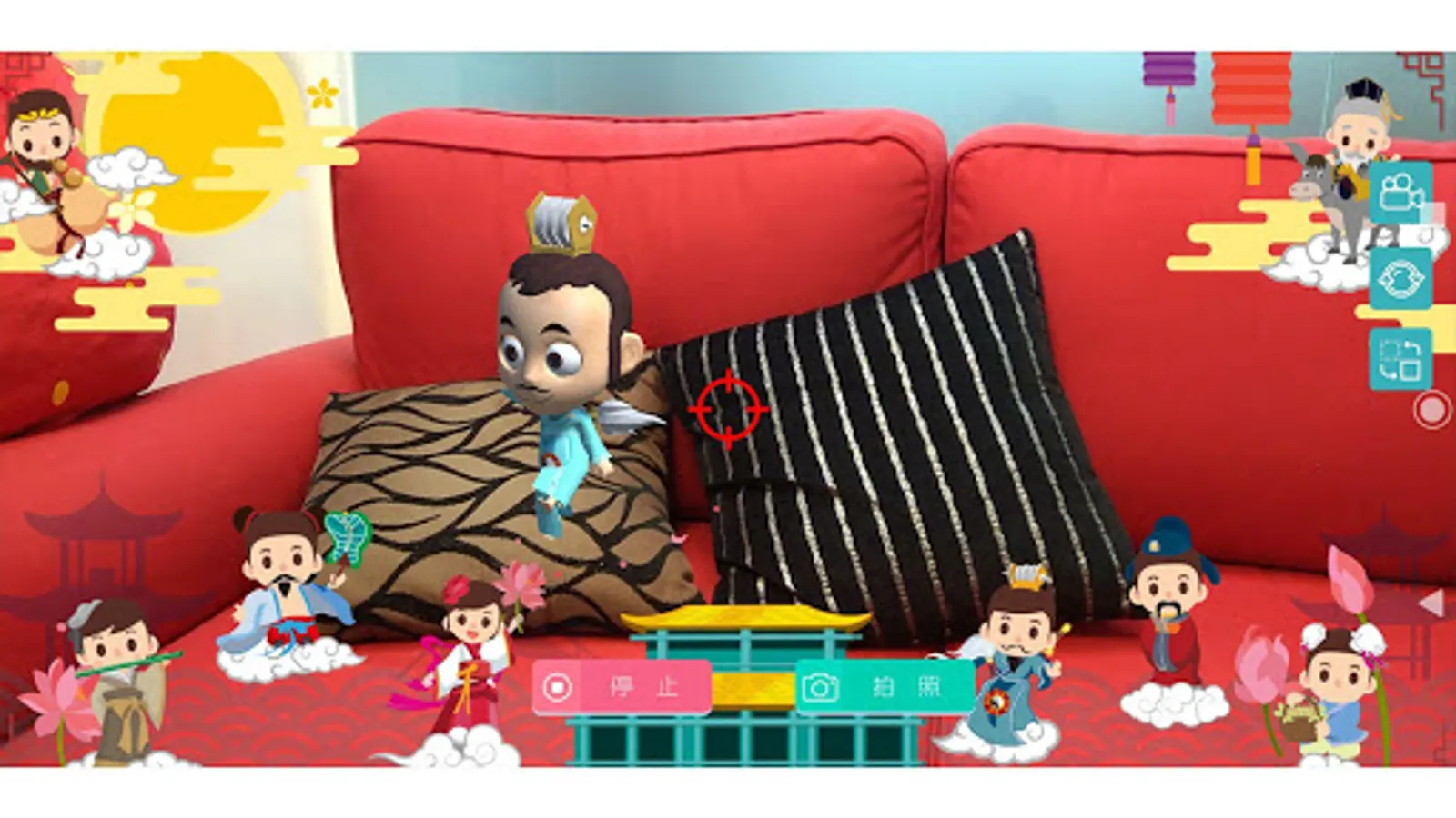 Plane detection and identification through a tablet or mobile device, presenting a mixed reality of MR, the eight gods that combine with the Eight Immortals cross the sea emerge from the screen, and accompany students in the teaching interaction of listening, reading and speaking, and support 6 different languages , It also allows students to immediately recognize their spoken speech and pronunciation and give feedback; and interactively upload photos and videos to social media such as Facebook and Instagram for sharing.
