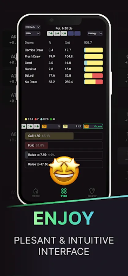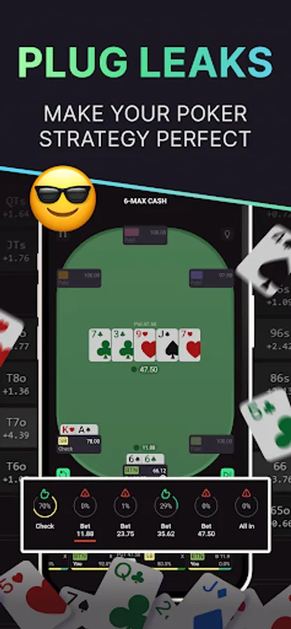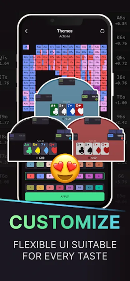 * We use the best solving algorithms for calculating strategies. All trees are solved with a very high accuracy, which you will not find in any other app