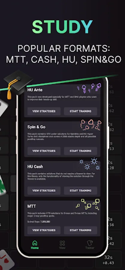 GTO Training Tool which makes the learning process interesting and as close as possible to the real game format