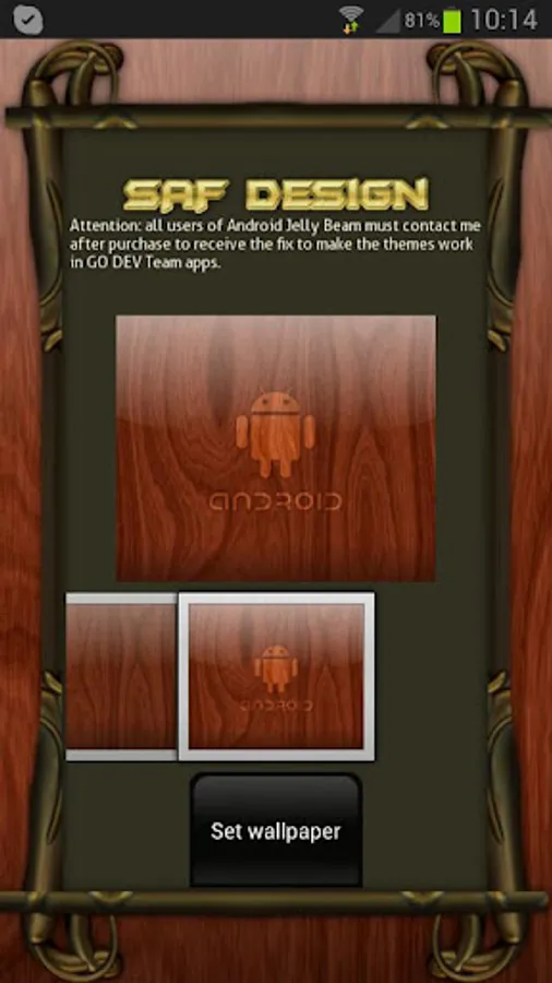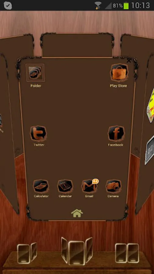 A nice and clean Mahogamy Wood theme for Next Launcher. Custom 35 icons. You need NEXT LAUNCHER to use this theme.