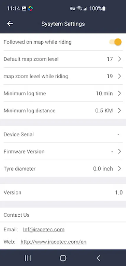 A riding tool that connects to hardware via Bluetooth to carry out various Settings and record movement tracks
