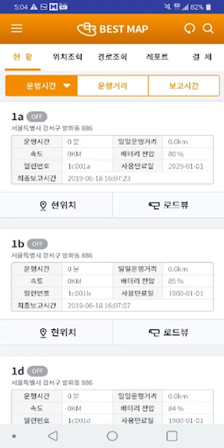 Real-time location using the vehicle GPS location tracking terminal (Rodmax, Keyer),