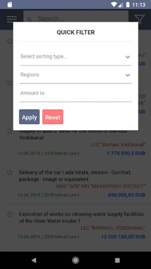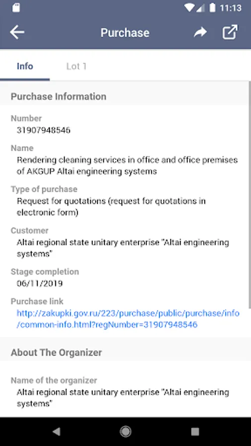 The application is designed for quick and easy search by open procurement information on the Unified Information System of the Russian Federation.