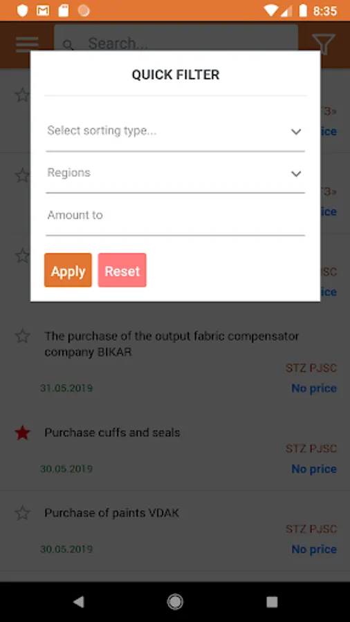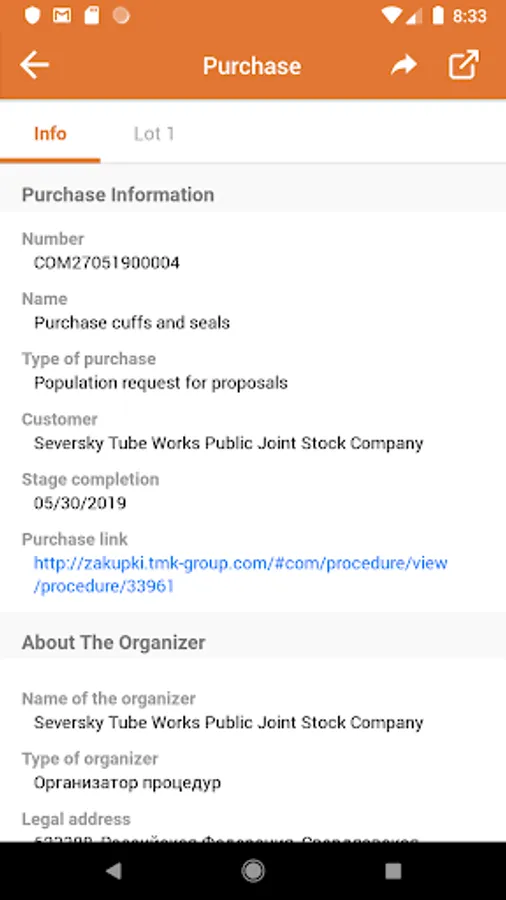 The application is designed for quick and easy search by open procurement information on the TMK electronic trading platform.