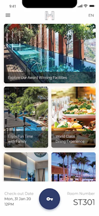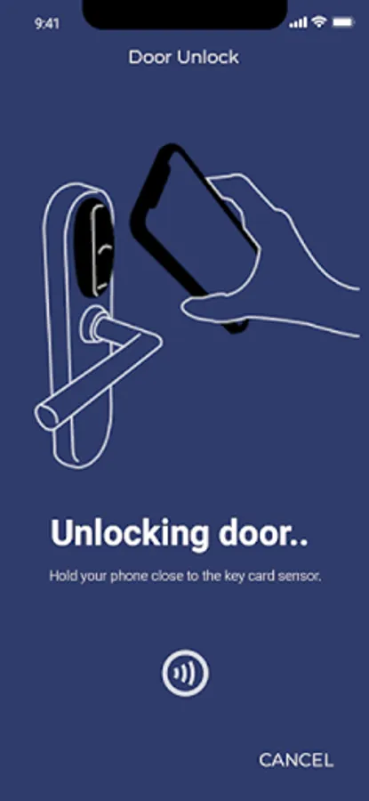 Check-in with the app using state-of-the-art facial verification technology, and receive your mobile room key when your room is ready. Using the mobile room key in the app, access your room and the building with a simple tap of a button on your mobile device.