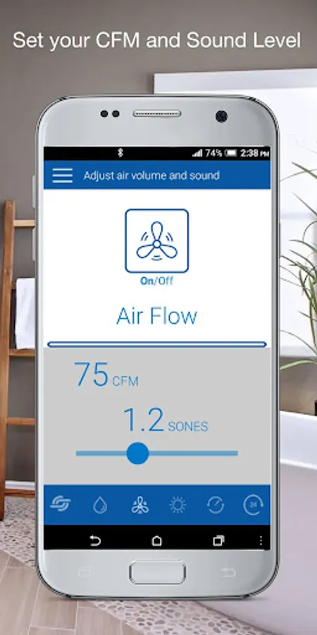 • Set the air volume or CFM’s (cubic feet per minute) and sound level (sones)