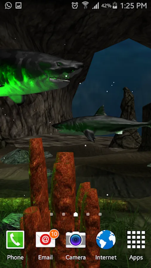 The best animated live wallpaper underwater of sharks, with great performance and graphics, with different camera animations and configuration options like: