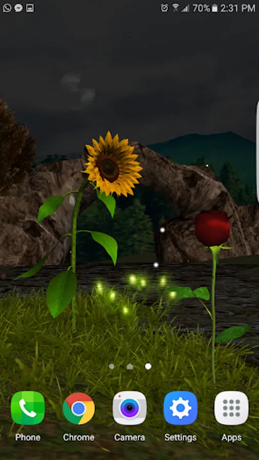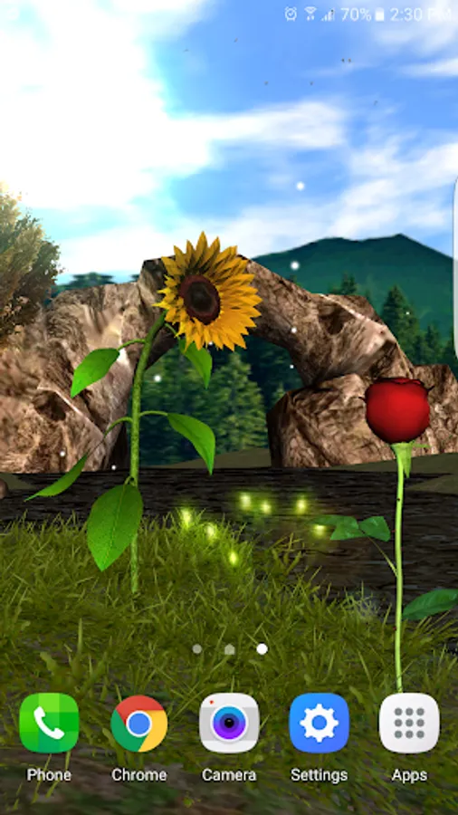 Animated livewallpaper of sunflower and rose with several effects and options with day and night cycle, weather options, show date, battery, time and personalized text, some options aro just in full version