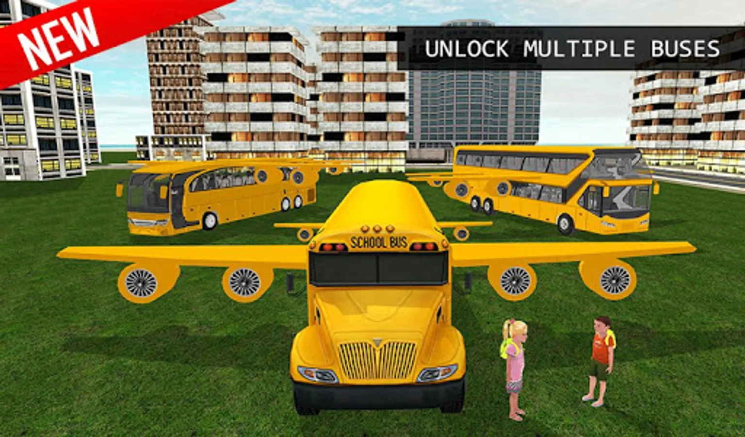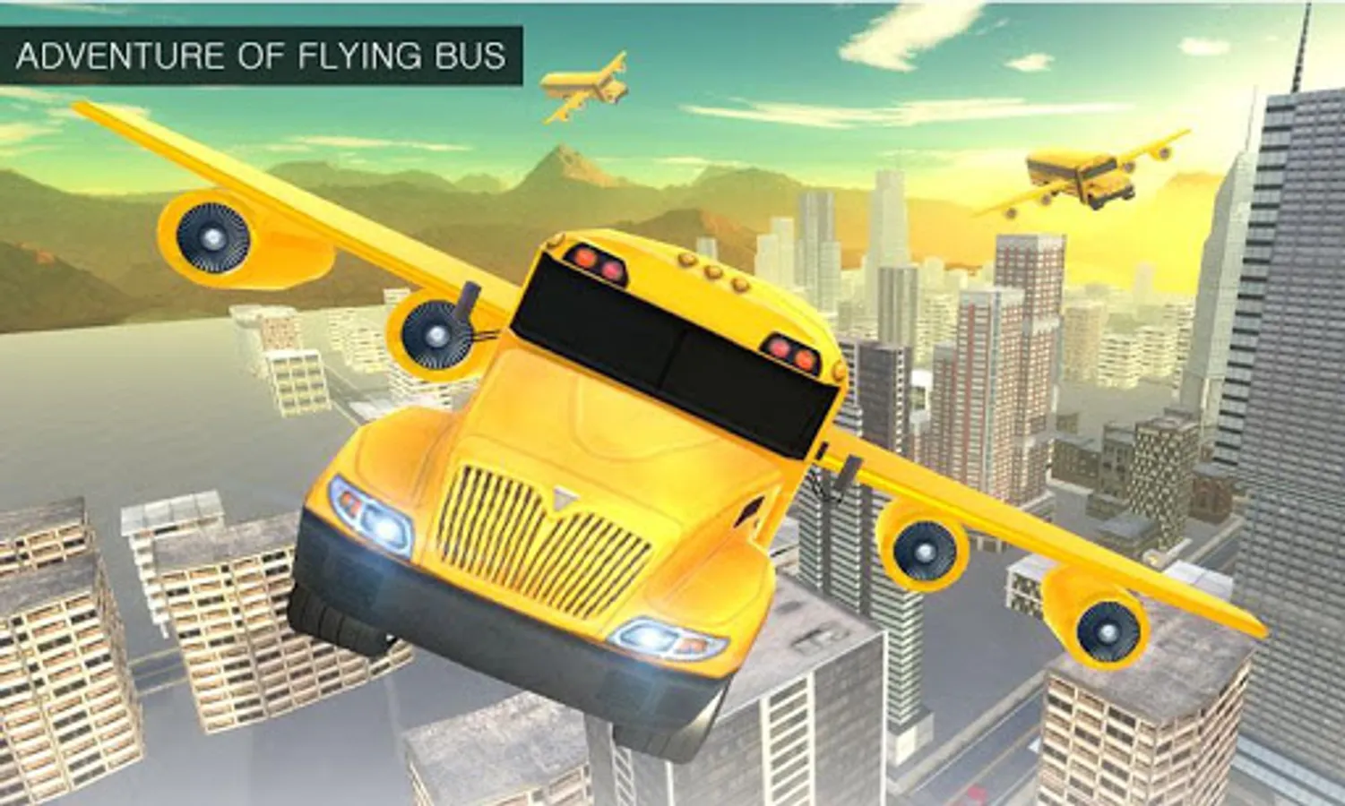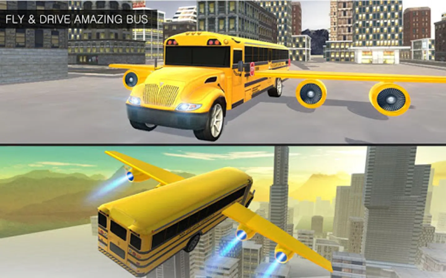 Fly your own #1 free to play flying bus simulator. Fly your luxurious Muscle flying bus on top of the city. Amazing Flying bus more realistic when you pick and drop the school Students from one destination to another. Stunning eye catching 3D graphics more attract to the school students of flying school bus. Flying school bus simulator brings for you the challenging flight in extreme weather condition. Test your Flying, like helicopter flying, Airplane flying and car driving ability at the same time in this game!