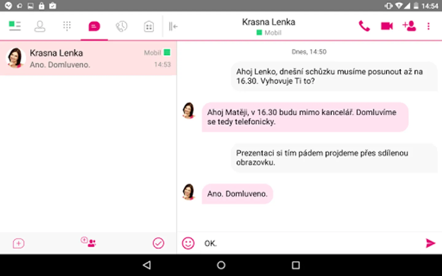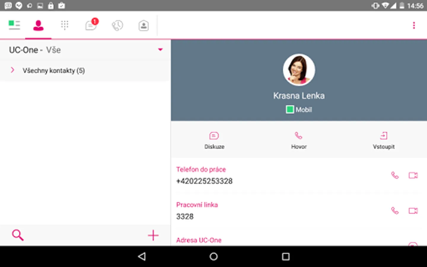 The GTS UC-One communicator is a SIP UA client for Android, connected to the Internet and IM&P. It also has integration with GTS IP Centrex platform for various calling features. End-users keep a contact list in the client showing the presence status of their colleagues. From this single interface the end-users can easily initiate and receive phone calls, video calls and instant messages. The contact list is perfect for easily starting multimedia communication, encouraging users to smarter and more frequent communication.